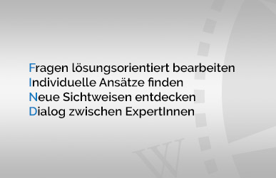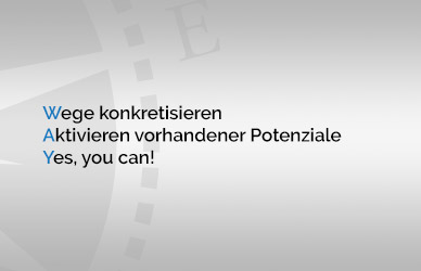 FindYourWay bedeutet auch, dass beim gemeinsamen Arbeiten Eigenverantwortlichkeit, Selbstbestimmung und Zukunftsorientierung wesentliche Faktoren sind – diese Grundwerte schließen daher aus, dass Coaching oder Mediation Beratung (Ratschläge sind „Schläge”) oder Therapie enthalten.